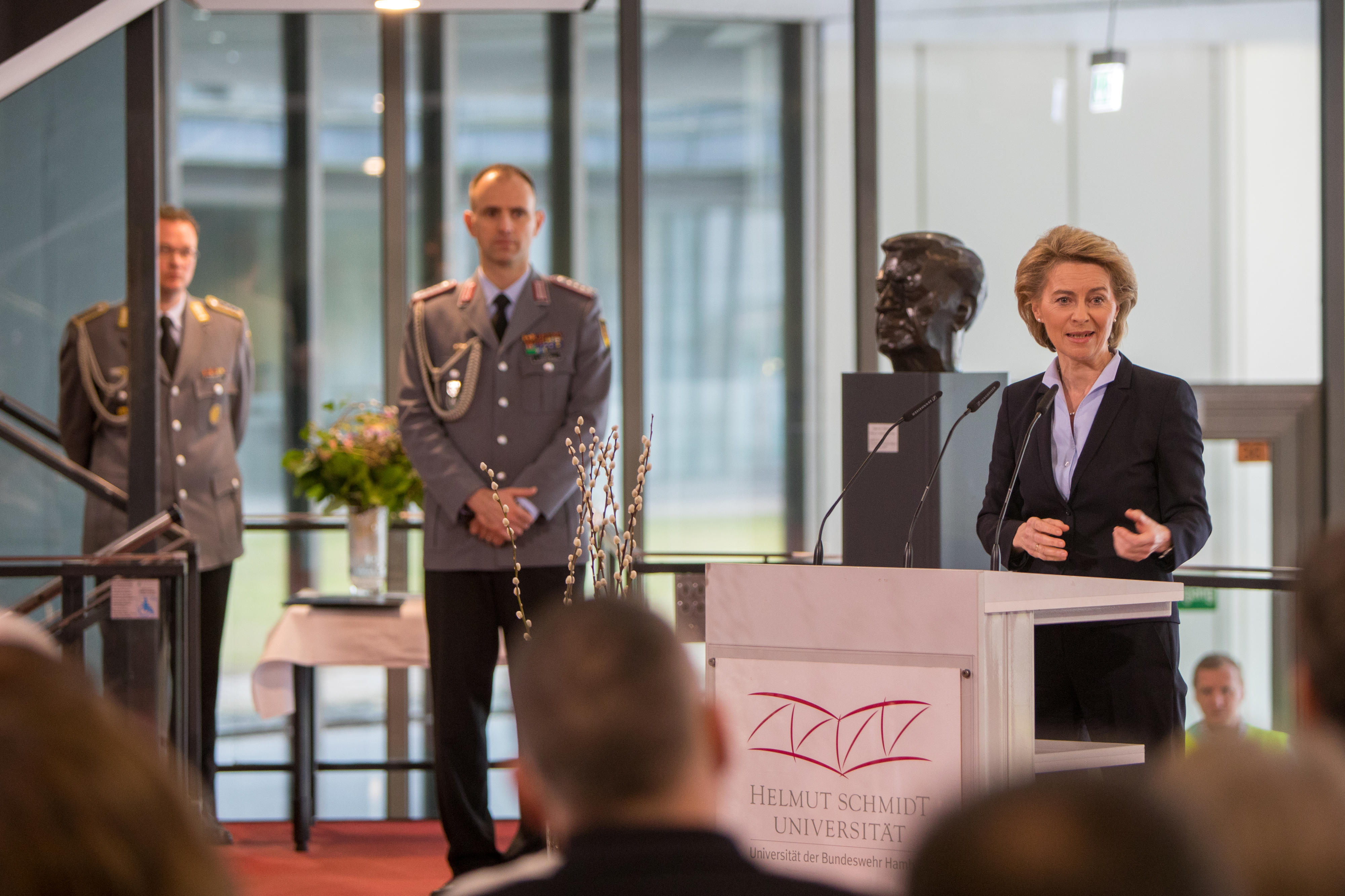 Hamburger Bundeswehr Uni Von Der Leyen Verteidigt Abhangen Von Helmut Schmidt Foto Mz De