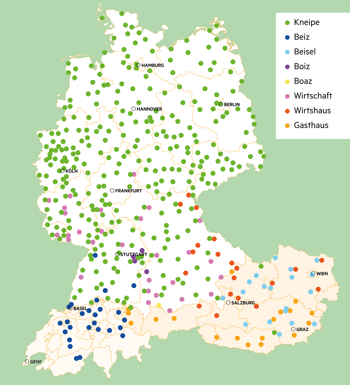 Sehr viele Deutsche, Österreicher und Schweizer trinken gern Bier Aber der Ort zum gemeinsamen Biertrinken heißt für Sie nicht gleich.