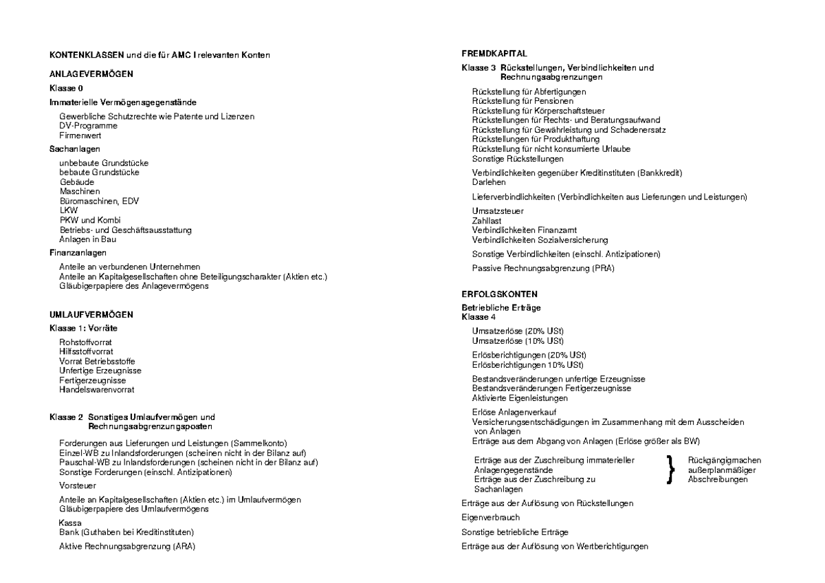 Kontenklassen Vorlesungsnotizen All Studocu