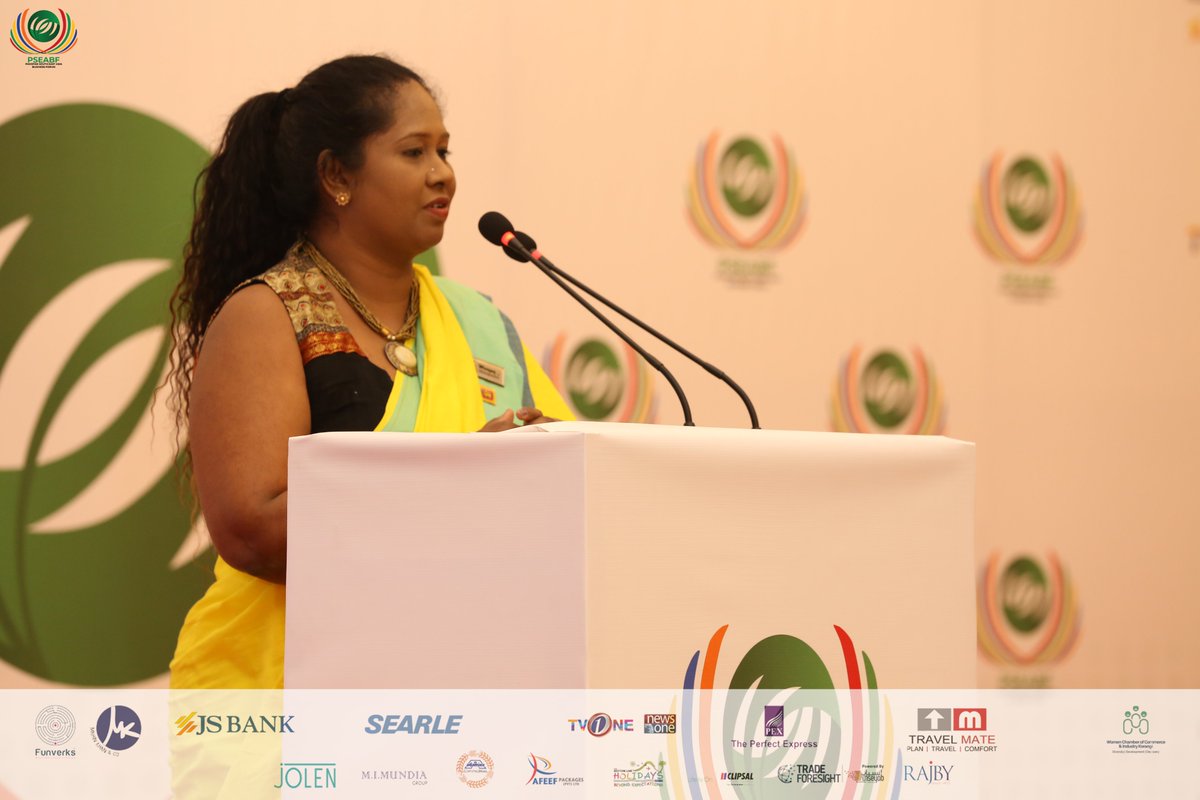 Pakistan South East Asia Business Forum Dr Sulochana Segera Founder Chairperson Women In Management Addressing The Audience At Pakistan South East Asia Business Forum International Business Conference 19 Pseabf19 Ibc19 Karachi