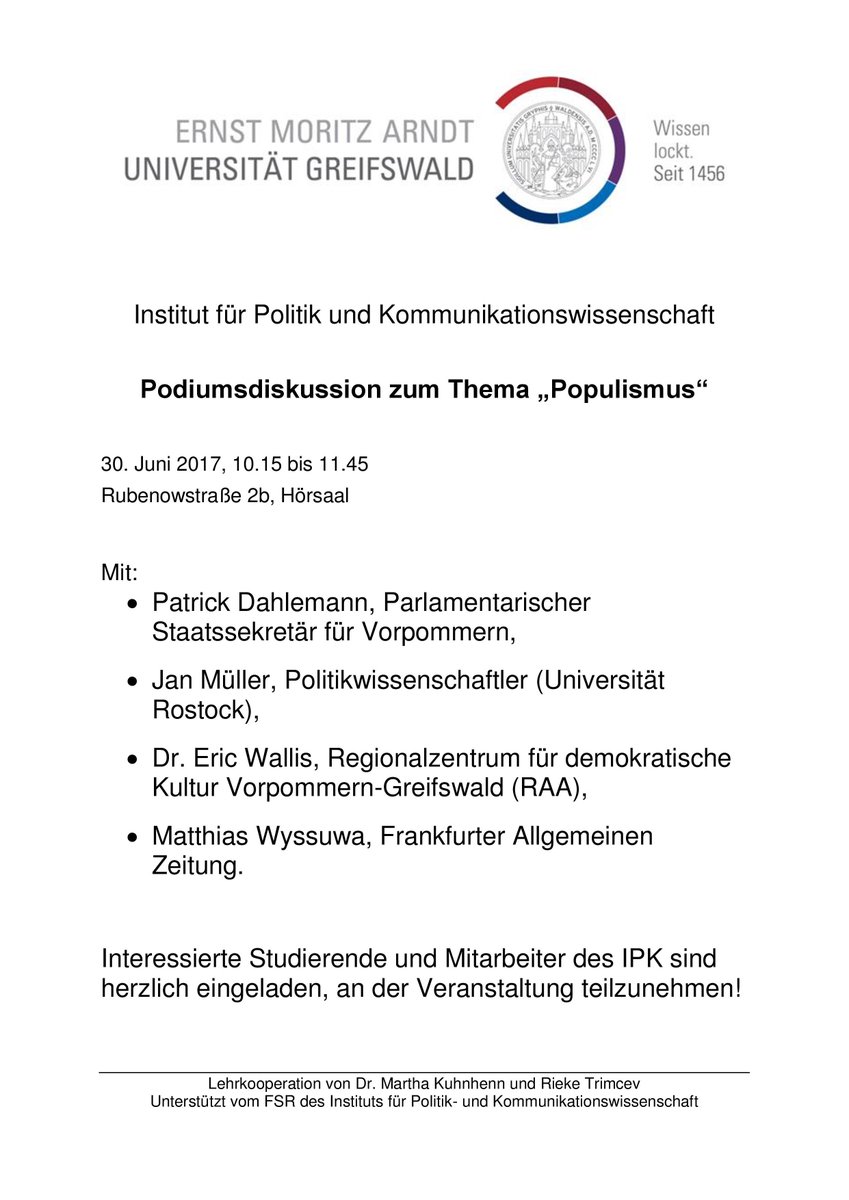 Bjorn Buss Save The Date Populismus Podiumsdiskussion An U Greifswald Wissen Lockt Mit Dahlemann Campaignspeech Mawy T Co 3rxb4rxx T Co Nf4a3a3z