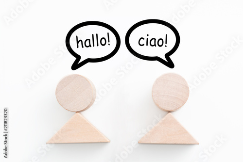 Figuren Mit Begrussung In Deutsch Und Italienisch In Sprechblasen Kaufen Sie Dieses Foto Und Finden Sie Ahnliche Bilder Auf Adobe Stock Adobe Stock