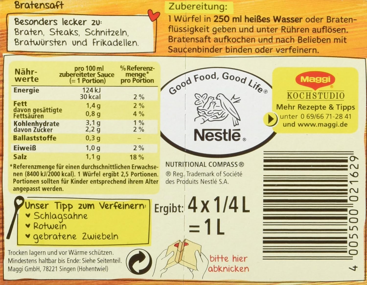 Maggi Bratensaft Wurfel 408 0 Kalorien Kcal Und Inhaltsstoffe Das Ist Drin
