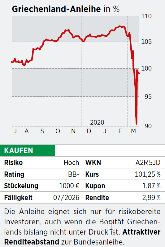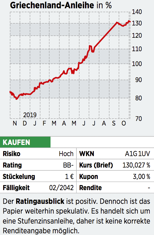 Um trotzdem Käufer für die GriechenlandAnleihen zu gewinnen sind die gewährten, jährlichen Zinszahlungen sehr hoch Außerdem kann der Käufer von GriechenlandAnleihen die Papiere meist. Anleihen Kaufen Recherchefunktionen, Kurse und Informationen zum Handel mit Staatsanleihen Griechenland beispielsweise hat vor nicht allzu langer Zeit gezeigt, dass einige Anleihen nicht so sicher sind, wie viele dachten.