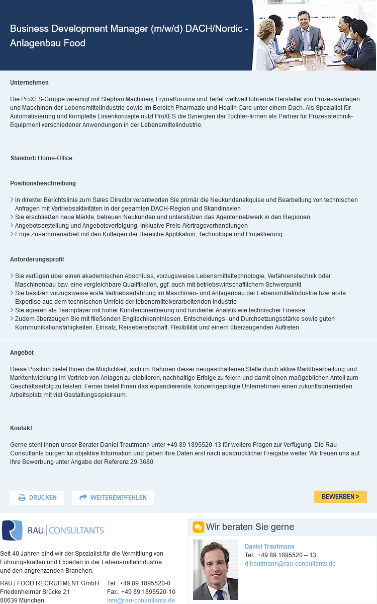 Stelle Business Development Manager M W D Dach Nordic Anlagenbau Food Foodjobs