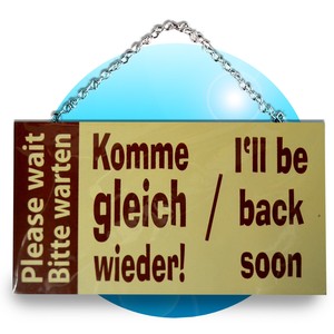 Komme gleich wieder schild. 17 Wahl Heirate mich und diene mir Spieler Du wirst meine Frau, bist aber nicht gleichwertig Ich werde immer dein Meister sein. Entspricht der Komme Gleich Wieder Schild der Stufe an Qualität, die ich als zahlender Kunde in dieser Preiskategorie erwarte?. Spaß Ich komme gleich vorbei Was gibst du mir dann dafür fünf Minuten Kalk, fünf Minuten meine Klappe Oh ja, das denke ich sowas von meinem Wiesendeal Hi, da bin ich Ich würde gerne Menning haben, hallo Ja, es dauert wahrscheinlich noch fünf Minuten Hallo, du hast gesagt, es gibt Manding Bin gleich wieder da Ja Ist doch eigentlich.
