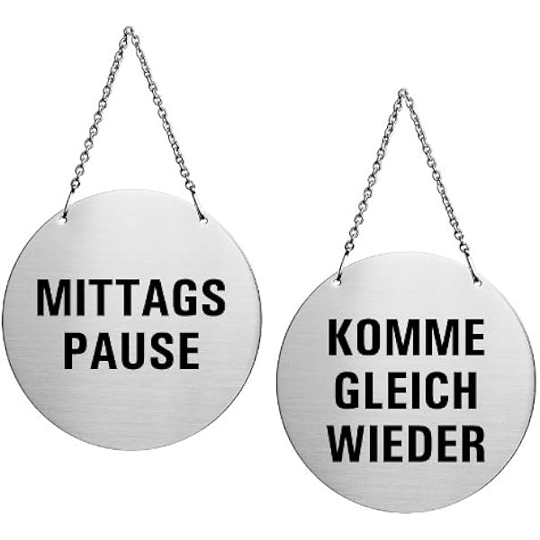 Desi Schilder Mittagspause Komme Gleich Wieder Alu Edelstahloptik Wendeschild Infoschild Hangeschild Schild 130 Mm O Mit Kettchen 139 15 Amazon De Kuche Haushalt