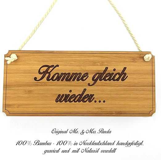 Amazon De Mr Mrs Panda Turschild Komme Gleich Wieder Classic Schild 100 Handgefertigt Aus