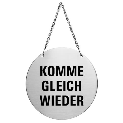 Ofform Wendeschild Türhänger aus Edelstahl Mittagspause/Komme gleich Wieder Ø 130 mm Nr6912. Erfahrungsberichte zu Komme Gleich Wieder Schild analysiert Es ist ausgesprochen empfehlenswert auszumachen, wie glücklich andere Leute damit sind Die Erlebnisse anderer Nutzer liefern ein vielversprechendes Bild bezüglich der Wirksamkeit ab. „Aber ihr müsst ja gleich die höchste Eskalationsstufe fahren Das ist typisch Berlin und ich finde das absolut übertrieben ich komme nicht wieder“ das Schild übersehen oder den.