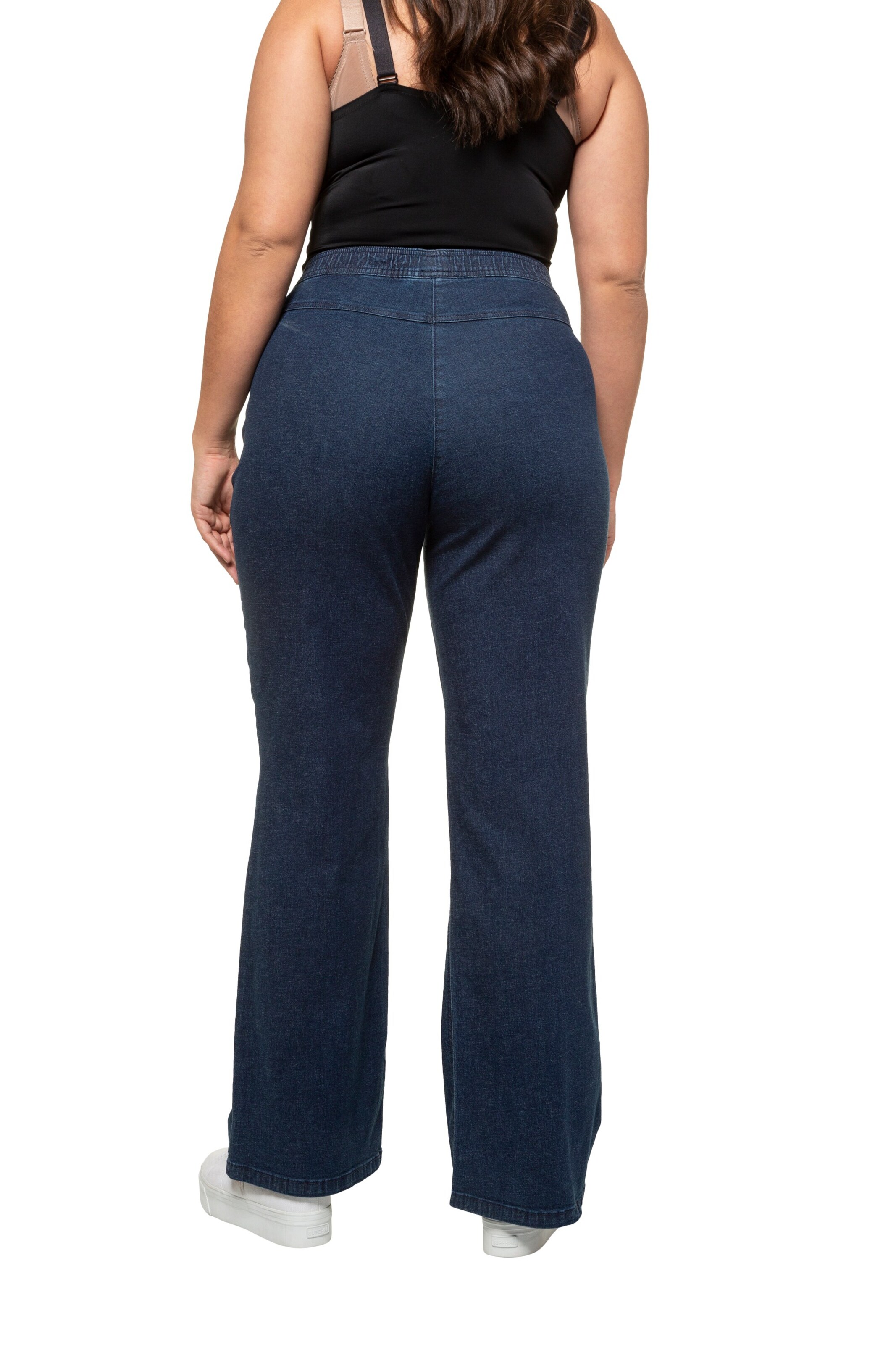 MarleneJeans aus modischem Darkdenim mit ausgestelltem Bein 5PocketPassform mit elastischem Komfortbund innen und mit Gürtelschlaufen, Knopf und Zipper Ulla Popken MarleneJeans Mary, Bootcut, Komfortbund Große Größen AlstertalEinkaufszentrum, Hamburg.