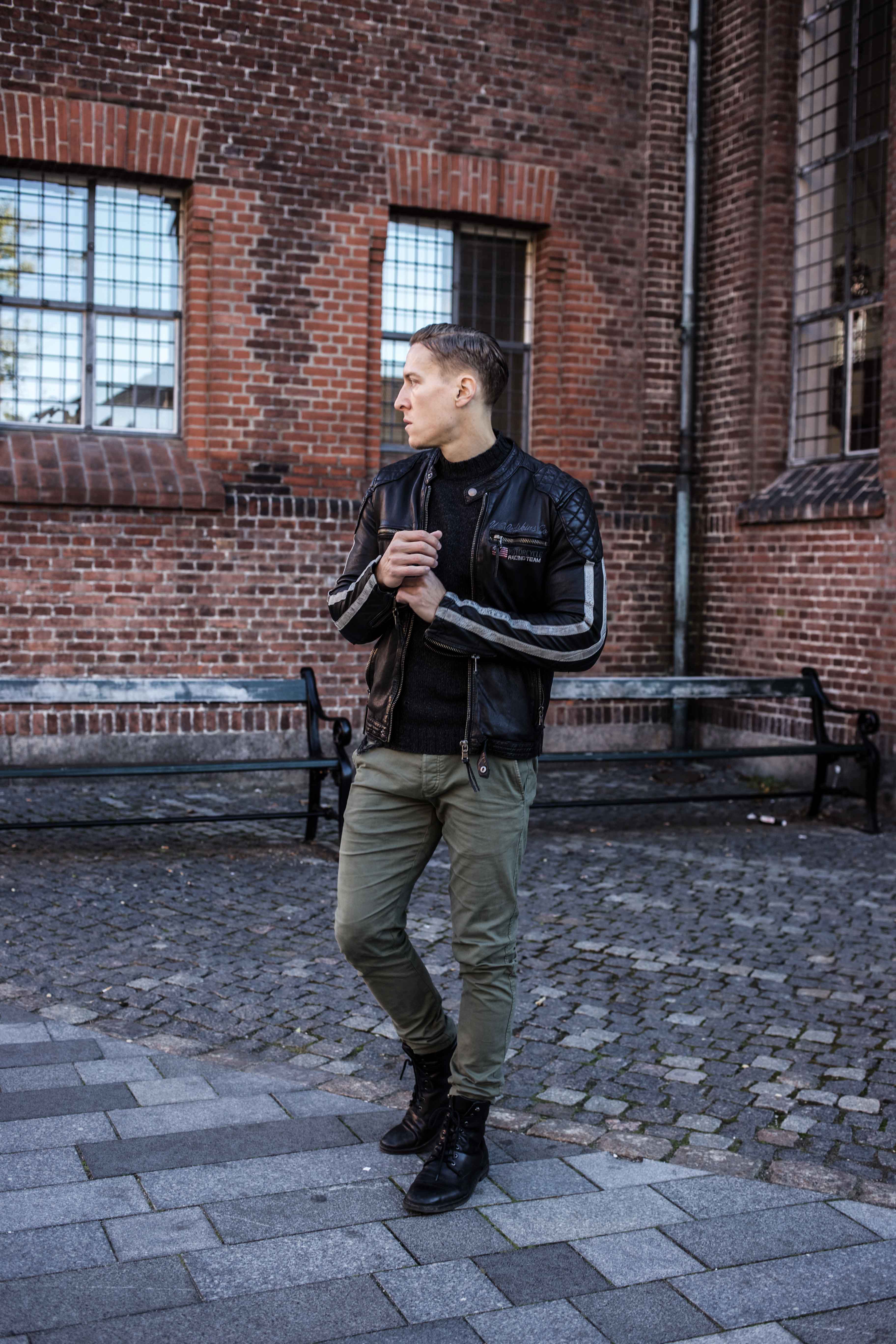 Grunge Look Trashed Pullover Und Schwarze Lederjacke