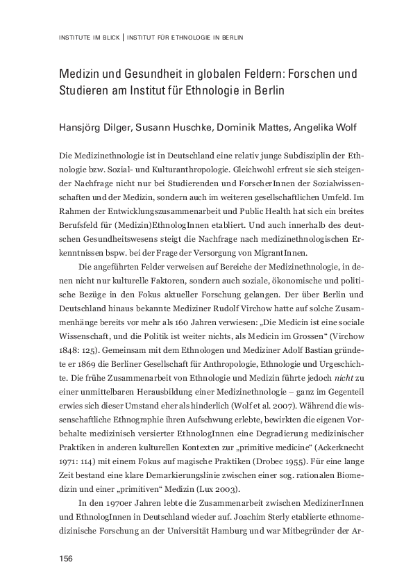Pdf Medizin Und Gesundheit In Globalen Feldern Forschen Und Studieren Am Institut Fur Ethnologie In Berlin