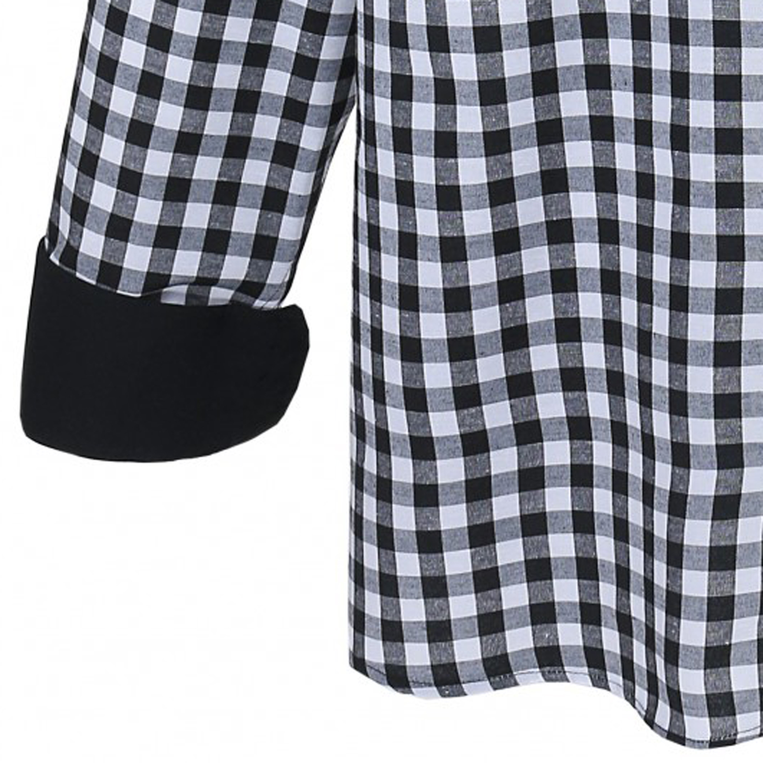 Huber Modisches Stehkragen Langarm Hemd Schwarz Weiss Kariert Hu 0454 Regular Fit Ebay