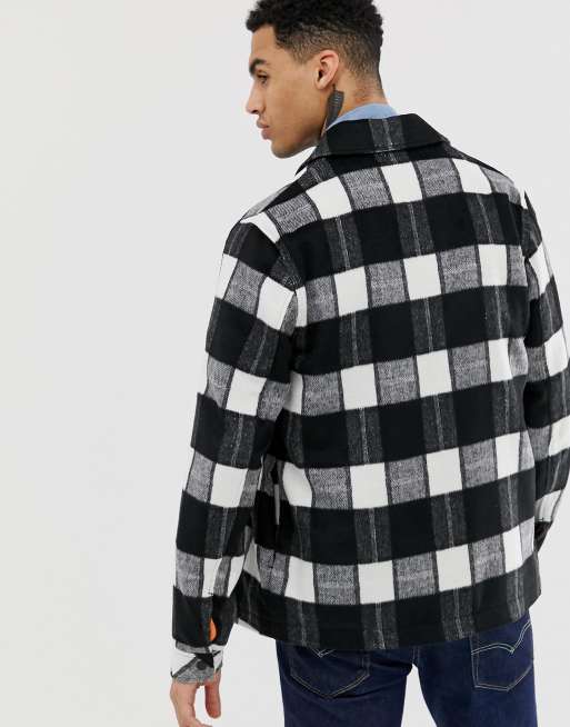 Asos Design Ungefutterte Jacke Aus Wollmischung In Schwarz Und Weiss Kariert Asos