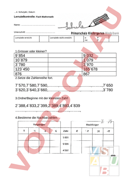 Zahlenraum Bis Mathematik 4 Klasse Klassenarbeiten Zahlenraum Mathematik 4