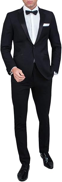 Dobell Herren Schwarzer Smoking Anzug Zweiteilig Fallendes Revers Skinny Fit 48 Jackett Mit 48 Hosen Amazon De Bekleidung
