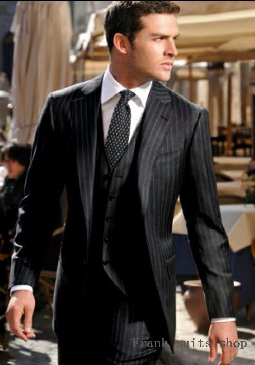Grosshandel 18 Neue Ankunfts Hochzeit Mens Schwarzer Streifen Anzug Set Herren Anzuge Mit Hosen Smoking Doppelreihern Jacket Pants Vest Von Lichee666 65 15 Auf De Dhgate Com Dhgate