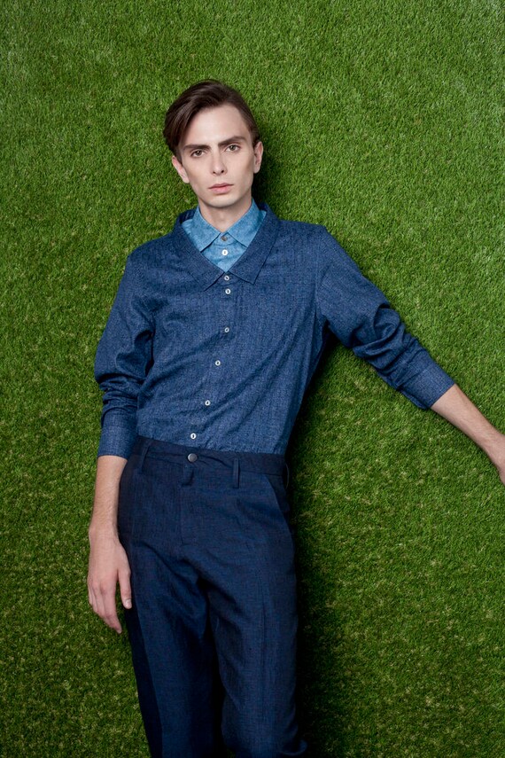 Mens Shirt Mens Blaues Hemd Mens Tiefes Kraben Hemd Mens Etsy