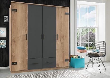 Mobel Wohnaccessoires Drehturen Schrank Mit Viel Stauraum Im Angesagten Industrial Look 180 Cm Lifestyle4living Kleiderschrank In Plankeneiche Dekor Mit Absetzungen In Graphit Kuche Haushalt Wohnen Luxdental Si