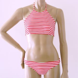 Basefield Neckholder Bikini Gestreift Marine Rot