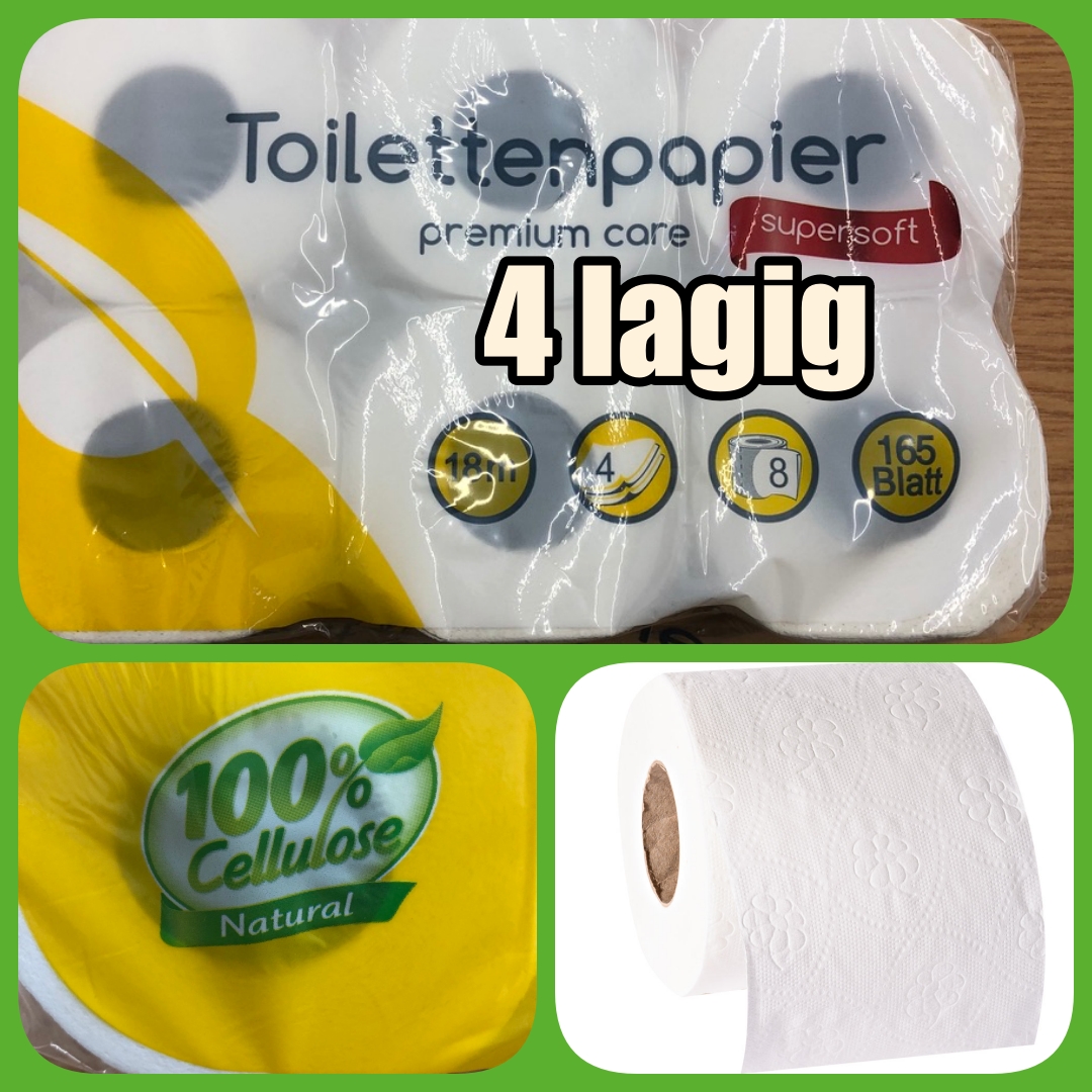 Toilettenpapier 4lagig weiß 8 Rollen Klopaier WCPapier vierlagig 150 Blatt EUR 4,11 (EUR 0,51/Stk) EUR 4,90 Versand Seitennummerierung Seite 1 1;. Satino Black Toilettenpapier 2lagig (24 Kompaktrollen) Thetford Aqua. Toilettenpapier 4 lagig Zellstoff 165 Blatt 0,24 € pro Rolle ab 2112 Rollen = 1 Palette = 33 VKE 0,23 € pro Rolle ab 4224 Rollen = 2 Paletten = 66 VKE KEINE EXTRA VERSANDKOSTEN.