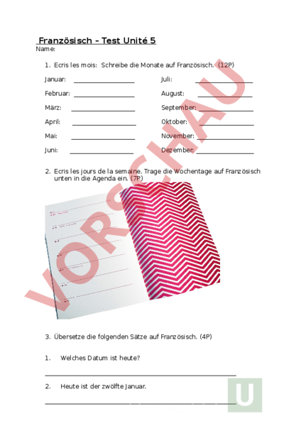 Arbeitsblatt Wochentage Und Monate Franzosisch Grammatik