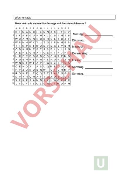 Arbeitsblatt Wochentage Franzosisch Franzosisch Wortschatz