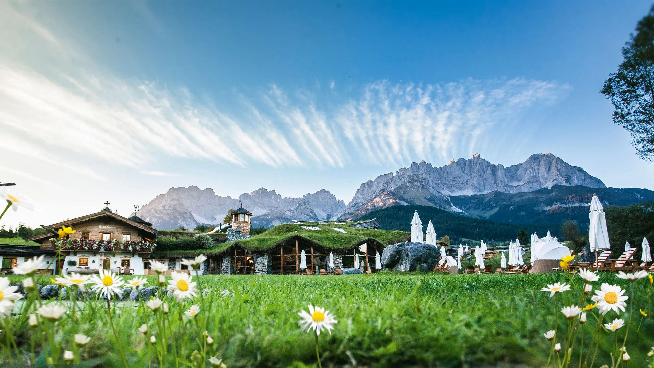 BioHotel Stanglwirt, Going am Wilden Kaiser, Austria The unique holiday village for body, mind & soul Savour unforgettable moments at the foot of the majestic ‘Wilder Kaiser’ mountain, renew your strength and spirit surrounded by nature in the oneofakind, newly expanded wellbeing world (100 m²) – sustained and heated by the establishment’s own mountain spring water. The Stanglwirt Riding School offers lessons and trips;. Genießen Sie unvergessliche Momente am Fuße des majestätischen "Wilden Kaisers", tanken Sie Kraft und Seele in der einzigartigen WellnessErlebniswelt inmitt.