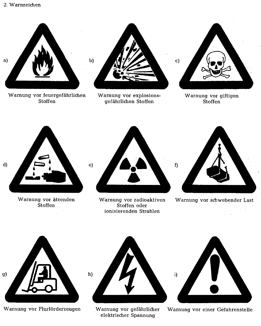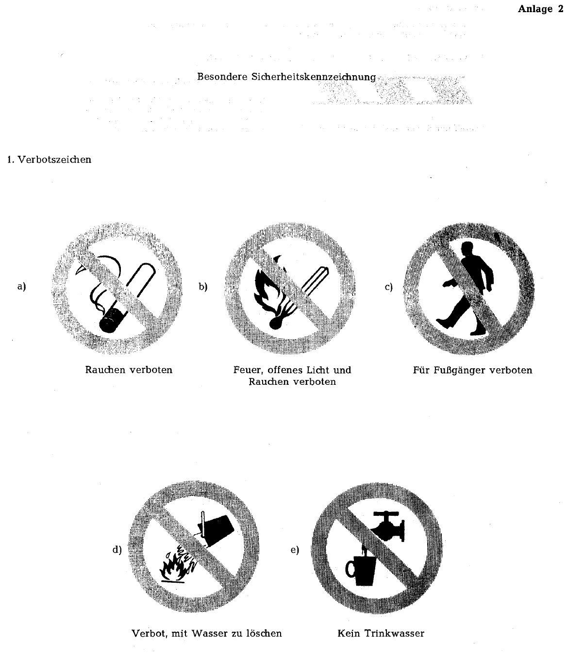 (2) Sind Behälter und Rohrleitungen, die für gefährliche chemische Arbeitsstoffe bei der Arbeit verwendet werden, nicht in Übereinstimmung mit den einschlägigen gemeinschaftlichen Rechtsvorschriften über die Kennzeichnung von chemischen Arbeitsstoffen und über die Sicherheitskennzeichnung am Arbeitsplatz gekennzeichnet, so stellt der. Generell sind für die Sicherheitskennzeichnung am Arbeitsplatz Sicherheitszeichen (Symbolzeichen) einzusetzen Denn Zeichen, die für sich selbst sprechen bedürfen keiner Erläuterung Die betriebliche Praxis erfordert aber teilweise zum eindeutigen Verständnis weitere Zeichen wie z B bei der Rettungswegkennzeichnung. Sicherheitskennzeichnung Sicherheits und Gesundheitsschutzkennzeichnung am Arbeitsplatz beinhaltet neben der Kennzeichnung von Verboten, Warnungen und Geboten auch die Kennzeichnung von Fluchtwegen, von ErsteHilfeEinrichtungen sowie von Einrichtungen zur Brandbekämfpung.