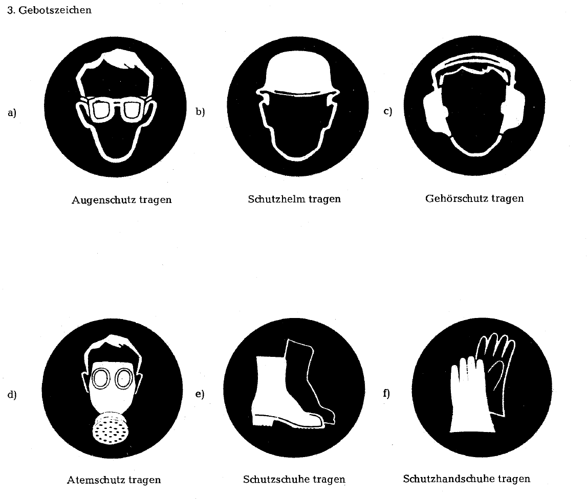 Das Anbringen von Sicherheitskennzeichen (nach DIN Sicherheitszeichen), die Sicherheitskennzeichnung, dient der Unfallverhütung und dem Gesundheitsschutz im Speziellen und der Sicherheit im Allgemeinen, insbesondere am Arbeitsplatz (Arbeitsschutz bzw Arbeitssicherheit. Hopp, V (01) Sicherheitskennzeichnung am Arbeitsplatz und nach der Gefahrstoffverordnung, VBG 125, in Grundlagen der chemischen Technologie für Studium und Berufsbildung, Vierte Auflage, WILEYVCH Verlag GmbH, Weinheim, Germany doi /ch67. Sicherheits und Gesundheitsschutzkennzeichnung am Arbeitsplatz beinhaltet neben der Kennzeichnung von Verboten, Warnungen und Geboten auch die Kennzeichnung von Fluchtwegen, von ErsteHilfeEinrichtungen sowie von Einrichtungen zur Brandbekämpfung Sicherheitskennzeichnung beinhaltet aber auch die Gestaltung von Flucht und.