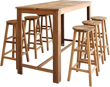 Festnight 7 Teiliges Barset Bartisch Und Hocker Set Aus Massives Akazienholz Stehtisch Kuchenbar Inkl 6 Barhocker Und 1 Bartisch Amazon De Kuche Haushalt
