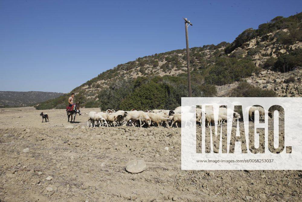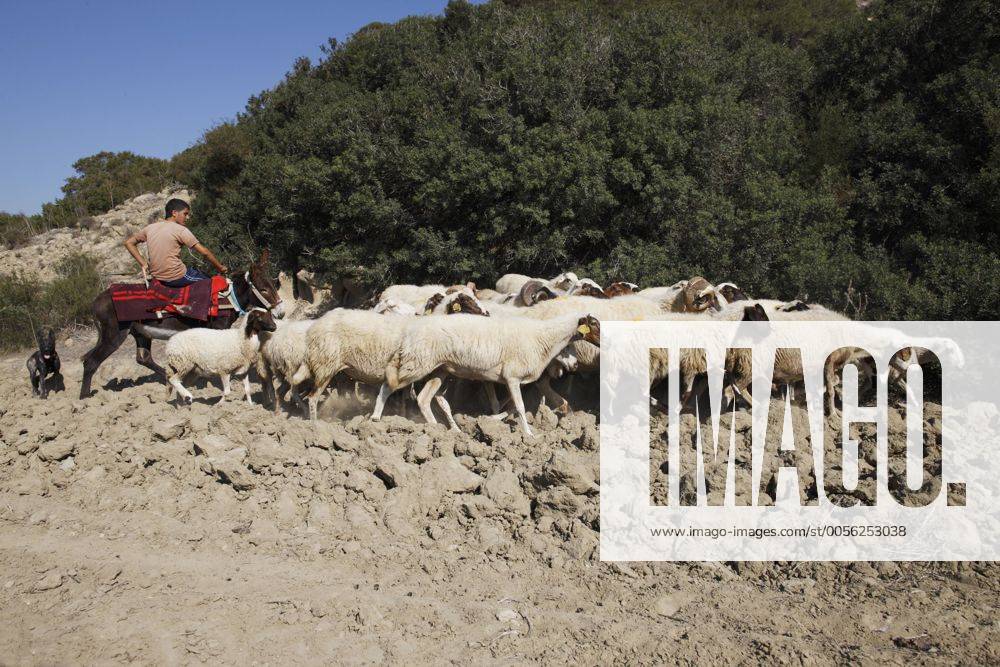Stockfoto Hirte Mit Schafen Zypern Schaefer Auf Einem E