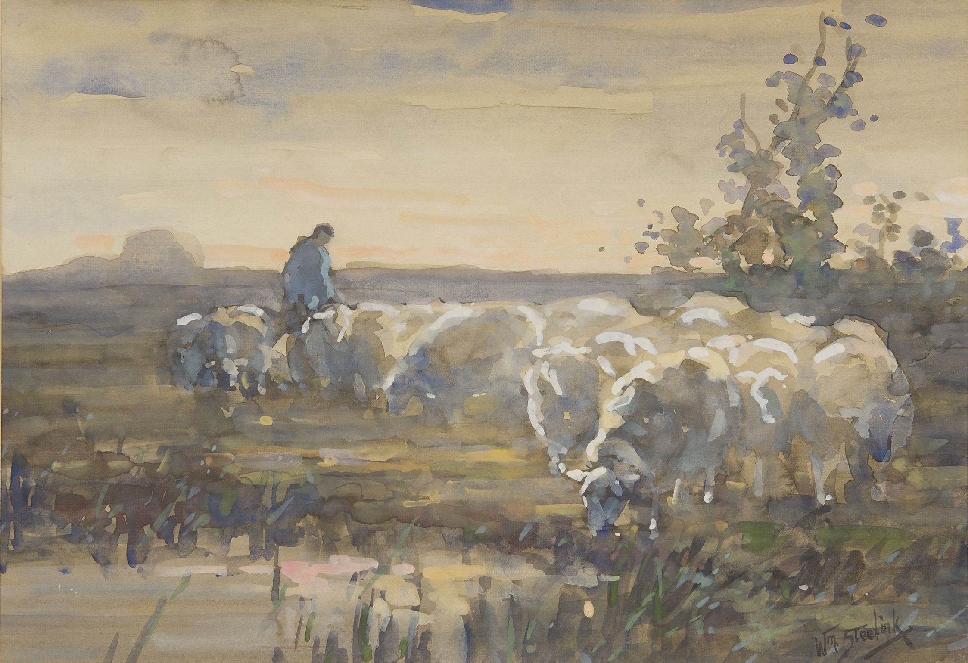 Willem Steelink Jr Aquarelle Und Zeichnungen Zum Verkauf Hirt Mit Schafen