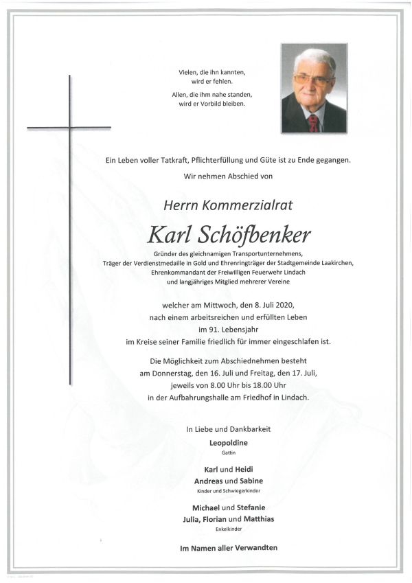 Kommerzialrat Karl Schofbenker Bestattung Leitner