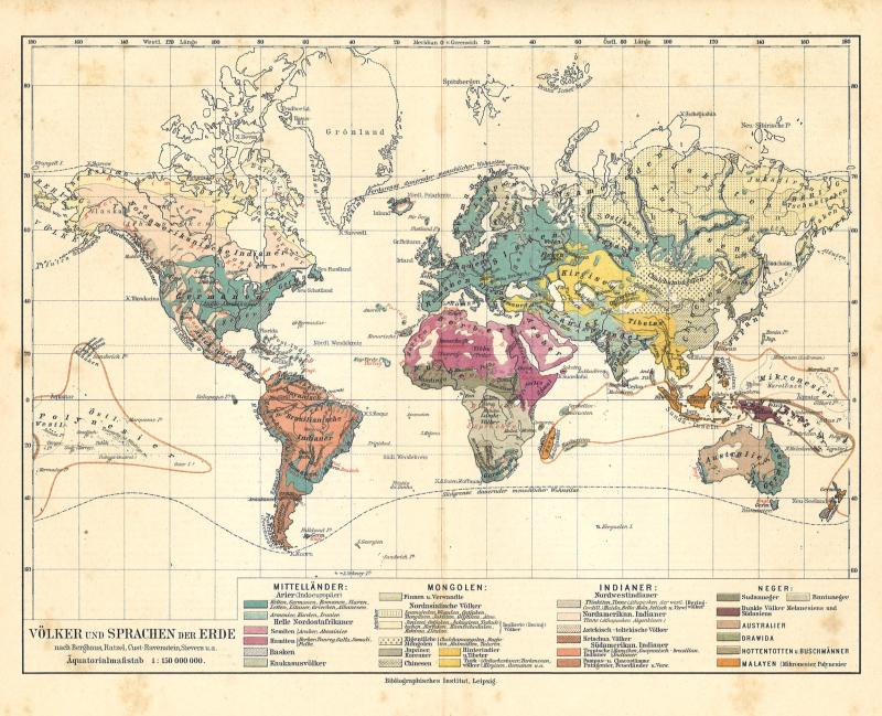 Alte Historische Landkarte 1909 Volker Und Sprachen Der Erde Mkl7 B Ebay