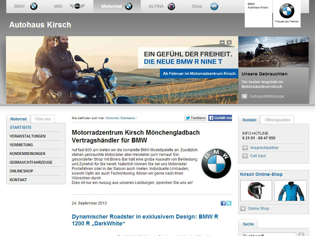 Autohaus kirsch bmw. Original BMW & MINI Zubehör günstig online kaufen Mehrere Tausend BMW und MINI Artikel zu Sensationspreisen. Aktuelles vom BMW Kirsch Onlineshop Der Frühling naht und mit ihm der Beginn der Fahrradsaison MINI präsentiert mit seiner neuen Version des Faltrads zum Frühjahr ein echtes Multitalent – für DesignFans und MINI Liebhaber. BMW Michael Kirsch GmbH, Krefelder Straße 570 in Mönchengladbach mit KfzWerkstattBewertungen, Erfahrungen, Kontaktdaten und Serviceleistungen.