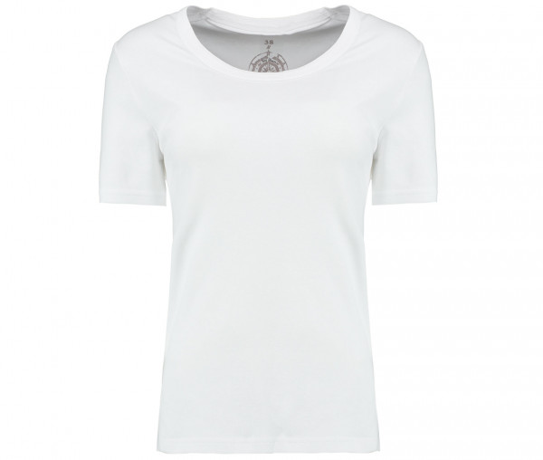 Basic T Shirt Breiter Kragen Weiss Rotholz