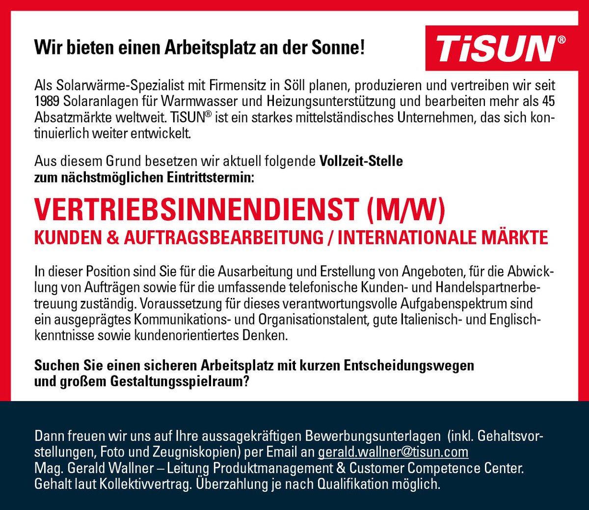 Tisun Zur Verstarkung Unseres Team Suchen Wir Vertriebsinnendienst M W Kunden Auftragsbearbeitung Internationale Markte T Co Kbek8xwixm