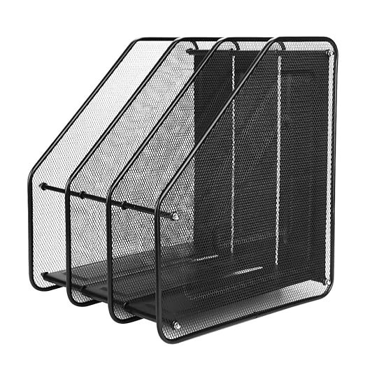 Exerz Gitter Metall Dreifach Schreibtisch Ordner Halter 3 Unterteilungen Dokumente Aufbewahrung Ordner Schnellhefter Organisator Stehsammler Buchstutze Schwars Amazon De Burobedarf Schreibwaren