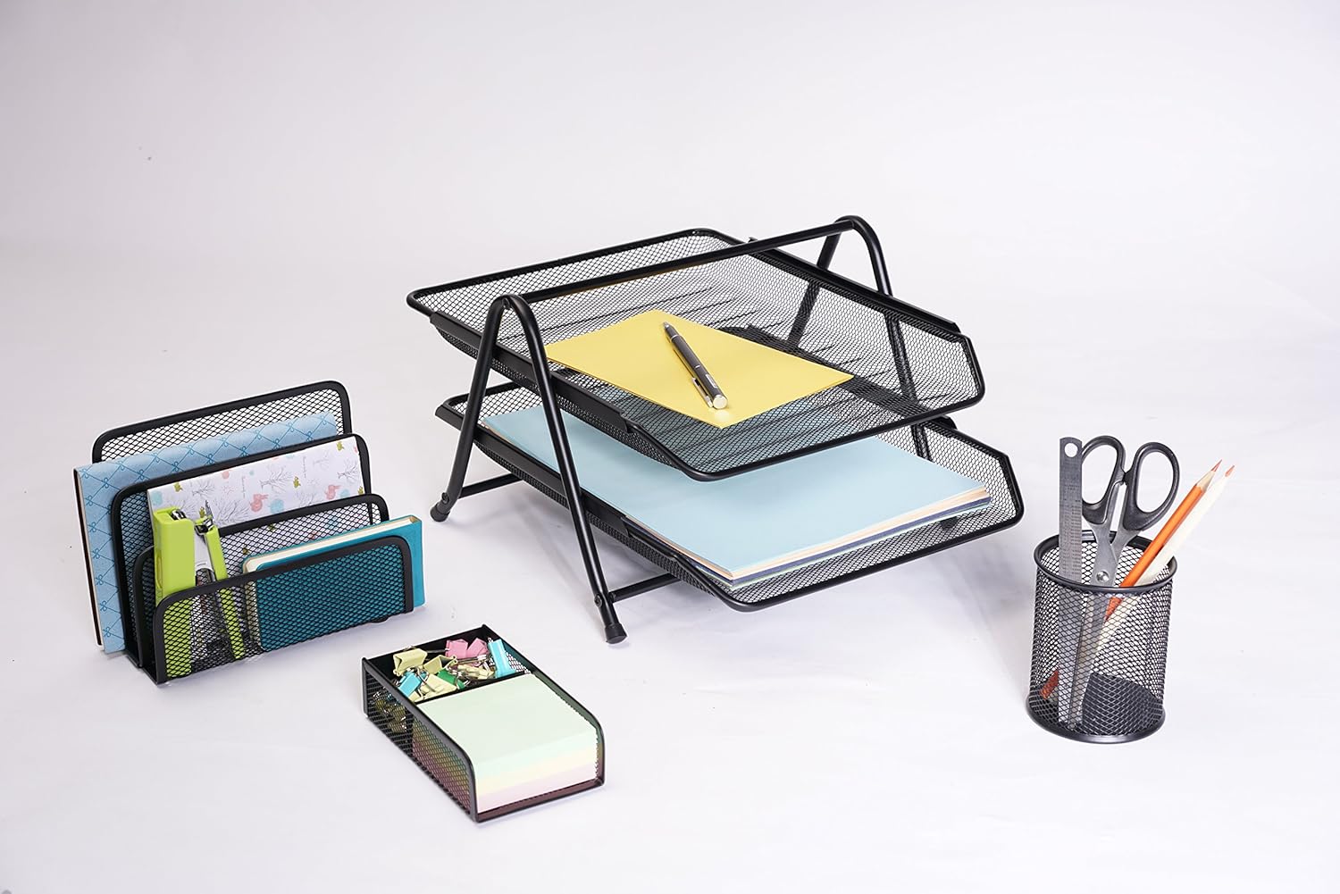 Lmzjlu Gitter Metall Zweifach Schreibtisch Ordner Halter 2 Unterteilungen Dokumente Stehsammler Buchstutze Aufbewahrung Ordner Schnellhefter Organisator Amazon De Kuche Haushalt