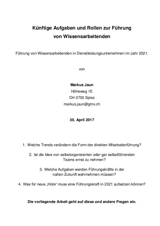 Die Rolle Einer Fuhrungskraft Hausarbeiten De