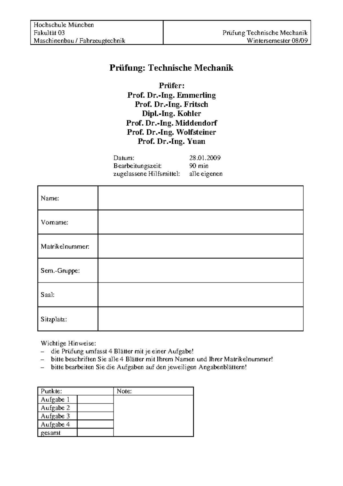 Sommersemester 17 Fragen Hochschule Nchen Fakult 03 Maschinenbau Studocu