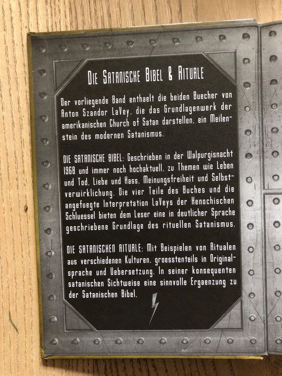 Satanische bibel gebote. Hinweis Ich gebe keine Garantie für die Echtheit, Korrektheit und Vollständigkeit dieser Informationen. Die 11 Satanischen Regeln 1 Gib keine Stellungnahmen oder Ratschläge, wenn du nicht gefragt wirst 2 Erzähle deine Sorgen nicht anderen, wenn du nicht sicher bist, dass sie sie hören wollen. Satan bibel Satan Bibel ua bei eBay Große Auswahl an Satan Bibel Folge Deiner Leidenschaft bei eBay Die Satanische Bibel (Originaltitel The Satanic Bible) ist ein von Anton Szandor LaVey verfasstes Grundlagenwerk der Church of SatanEs besteht aus den vier Büchern Satan, Luzifer, Belial und LeviathanIn dem Buch beschreibt LaVey seine Weltanschauung, mit der er zugleich den Status.