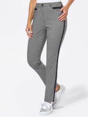 Stretch Marlene Hose Straight Fit Eingriffstaschen Schwarz Weiss Kariert