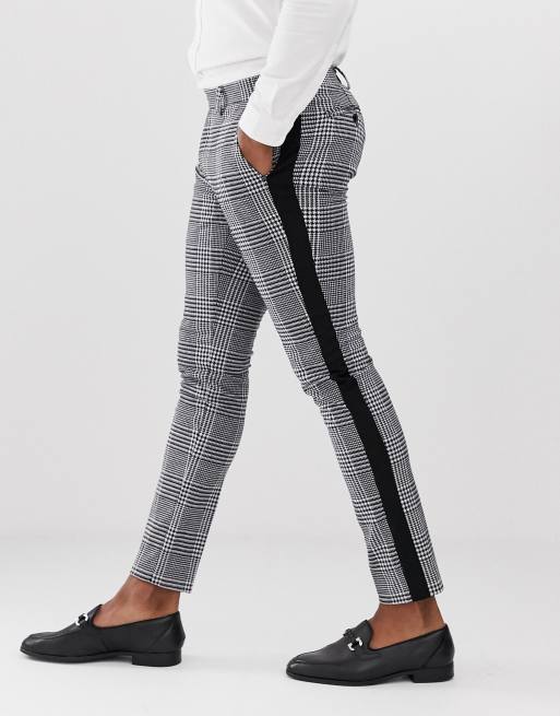 Devils Advocate Schmal Geschnittene Schwarz Und Weiss Karierte Hose Mit Seitenstreifen Asos