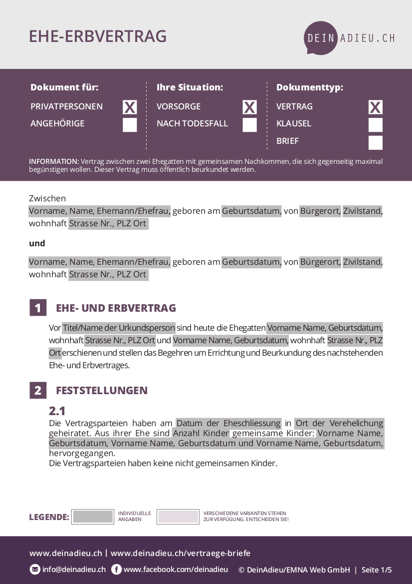 Ehe Und Erbvertrag Ch Vertrag Download