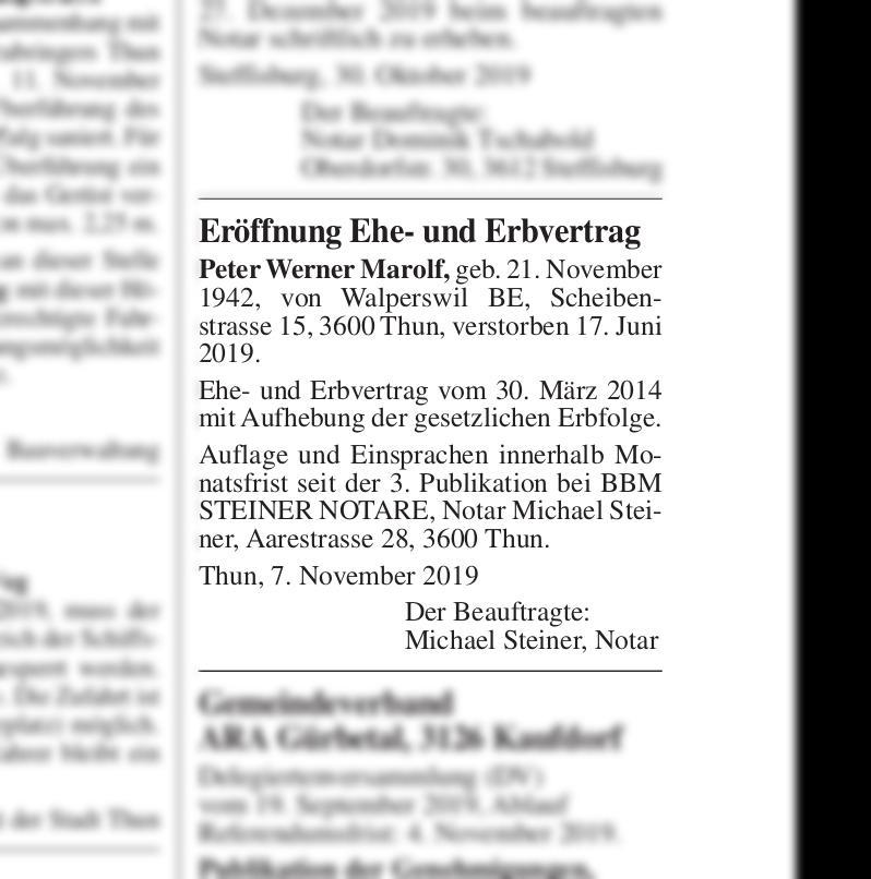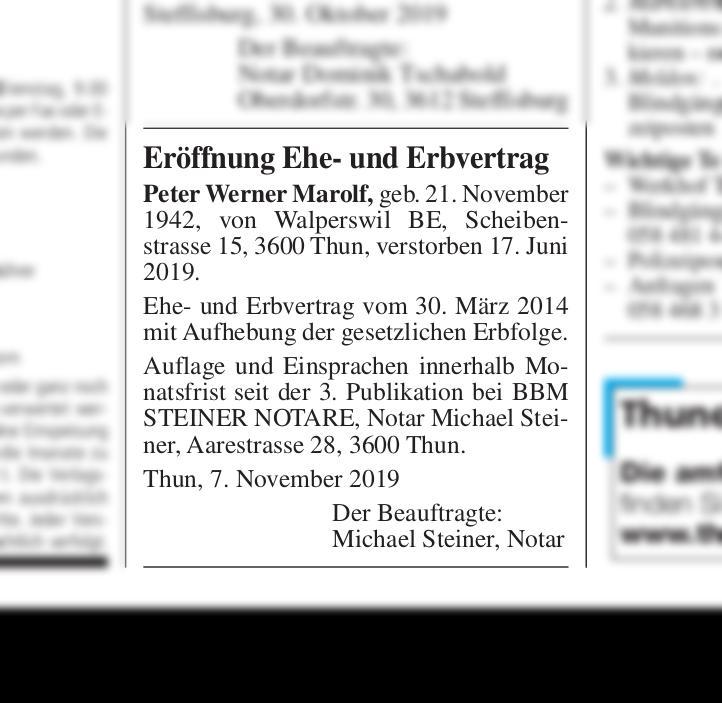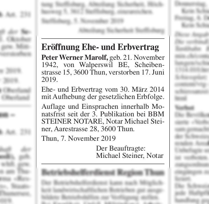 Eroffnung Ehe Und Erbvertrag Thuner Amtsanzeiger