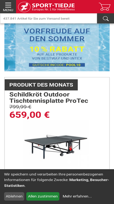 Best buy at SportTiedje, Europe's no 1 for home fitness, with 65 specialist fitness stores on site and online shop. SportTiedjede OnlineShop Bewertung Ihre Bewertung hinzufügen Taurus Ergometer, Kinomap Schwarz Hattersheim (0125 ) Hallo zusammen, ich habe den Shop gut sortiert aufgefunden Nach telefonischer Rücksprache mit Personal habe ich das richtige Produkt gefunden, nachher habe ich mich nochmals im Geschäft erkundigt wo mir eine. 43 SportTiedje Gutscheine bei sporttiedjede im Januar 21 und Sparen Sie bis zu 65% Hier ist der beliebteste Gutschein 10% Rabatt Auf Ausgewählte Tischtennisplatten Bei SportTiedje.