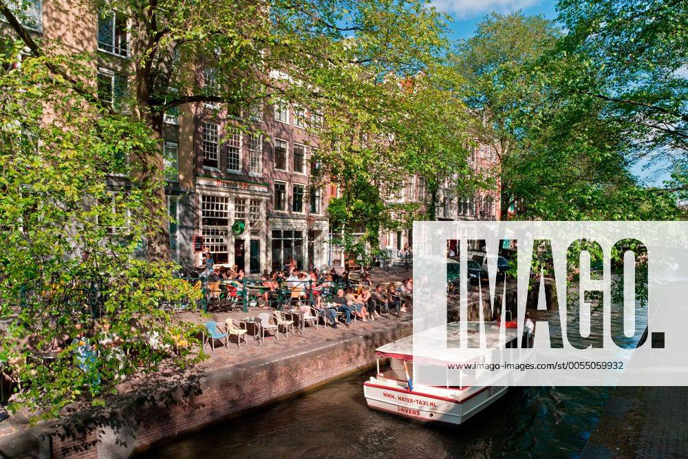 Stockfoto Amsterdam Jordaan District Cafe On A Canal Br