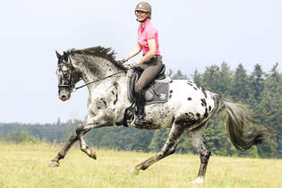Daher sollte dieser Galopp so schnell wie möglich korrigiert werden, falls das Pferd diesen Galopp von Natur aus zeigt oder falsch trainiert worden ist Die zweite Art des Viertaktgalopps ist der Schulgalopp Hierbei fusst der innere Hinterfuss vor dem äußeren Vorderfuss auf Das Pferd galoppiert bergauf. Takt 2 Takt Phasen 4 Tempi Gangmaß – mehr oder weniger raumgreifender Vortritt 10 – 19 km/h Arbeitstrab, Mitteltrab, Versammelter Trab, Starker Trab Der Galopp Fußfolge, Takt, Phasen, Tempi Er setzt sich zusammen aus einer Reihe von Sprüngen mit einer Schwebephase dazwischen. Der Knabstrupper wurde auch getigerter Hengst genannt Einsatzbereiche des Knabstruppers Der Knabstrupper ist ein Warmblüter, der ursprünglich aus Dänemark stammtEr hat sehr gute Reit und Fahrpferdeigenschaften und überzeugt dabei durch seine hohe LeistungsbereitschaftDer Knabstrupper, den es in verschiedenen Typen gibt, ist vielseitig im Reitsport einsetzbar.